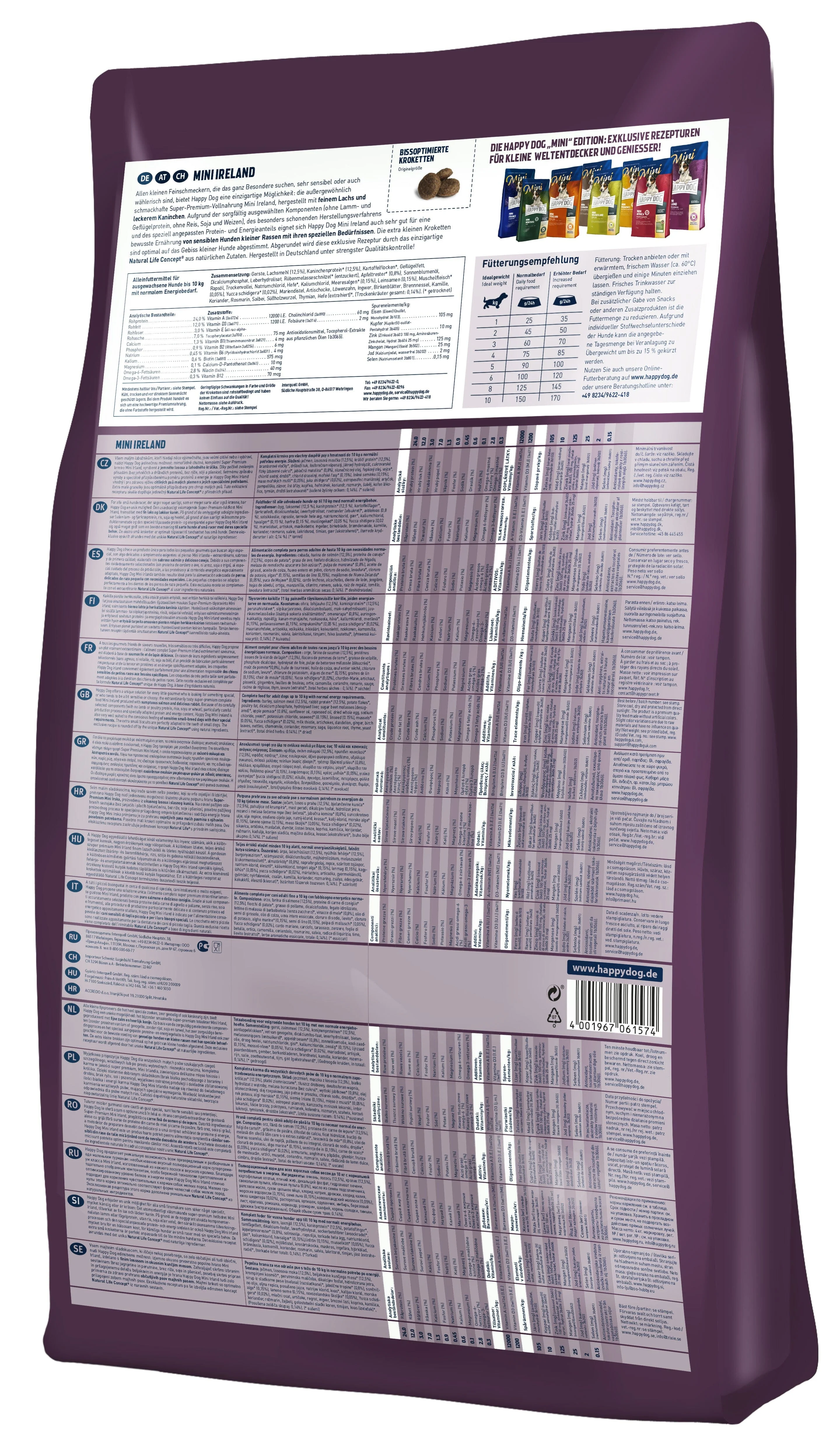 Mini Ireland combines fine salmon and rabbit for a delicious, sensitive-friendly recipe tailored to small dogs (up to 10kg). Packed with omega oils for skin and coat health, it’s perfect for picky eaters and sensitive stomachs.